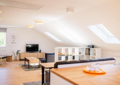 Besonders hervorzuheben ist der schöne Blick über Weinberge bis hin in den Randersackerere Ortskern. Eine wirklich traumhafte Atmosphäre in dieser frisch sanierten Dachgeschosswohnung.