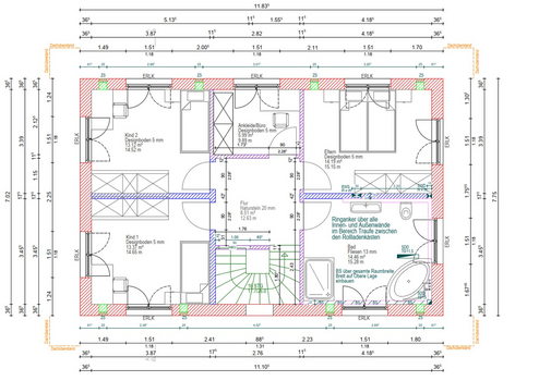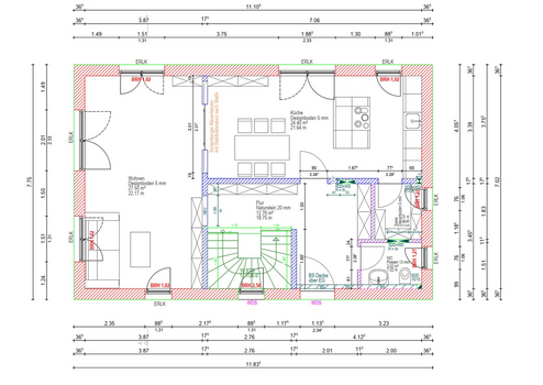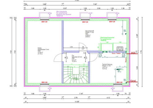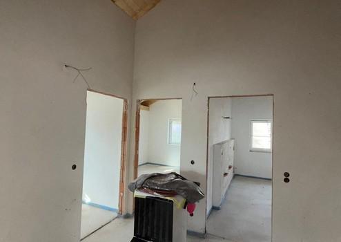 Alle Fenster sind moderne HomeSoft-Kunststofffenster in Weiß mit Dreifachverglasung (48 mm Klarglas), Wärmedämmung 0,76 W/m²K und 34 dB Schallschutz. Rollläden sorgen für Verdunkelung und zusätzlichen Wärmeschutz. Große Fensterflächen lassen viel Tageslicht herein, während der offene Dachstuhl im 1. Stock Ihrem Zuhause ein besonders luftiges und großzügiges Raumgefühl verleiht. Praktische Nischen im Erdgeschoss bieten zusätzlichen Stauraum, und in der Küche ist Platz für eine großzügige Kücheninsel – ideal, um Ihre individuellen Einrichtungsideen umzusetzen.