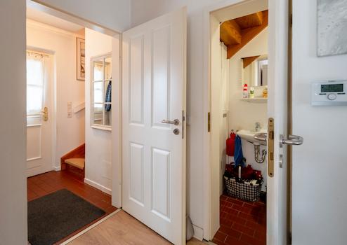 Die Lage dieses Reihenendhauses ist optimal für Familien mit Kindern: Ein großer Supermarkt liegt gegenüber, Schulen und Kindergärten befinden sich in der Nähe. Und die malerische Husumer Innenstadt mit zahlreichen Shoppingmöglichkeiten, Cafés und Restaurants ist nur wenige Fahrradminuten entfernt. Husum, liebevoll „die kleine Metropole an der Nordseeküste“ genannt, ist das Zentrum des Kreises Nordfriesland und das Zuhause für rund 24.000 Einwohner. Husums Angebot in den Bereichen Tourismus, Wirtschaft, Kultur, Bildung und Verkehr lässt keine Wünsche offen. Große Einkaufszentren gibt es hier genauso wie kleine, exquisite Ladengeschäfte. Kindergärten, Kindertagesstätten, Grundschulen, Gymnasien – alles ist vorhanden. Auch die medizinische Versorgung ist vorbildlich, neben dem Klinikum Nordfriesland finden sich zahlreiche Arztpraxen in und um Husum. Die einmalige Lage, die idyllische Altstadt, die perfekte Infrastruktur und die vielen Freizeitmöglichkeiten machen Husum und sein Umfeld sehr beliebt bei Einwohnern wie Besuchern gleichermaßen.
