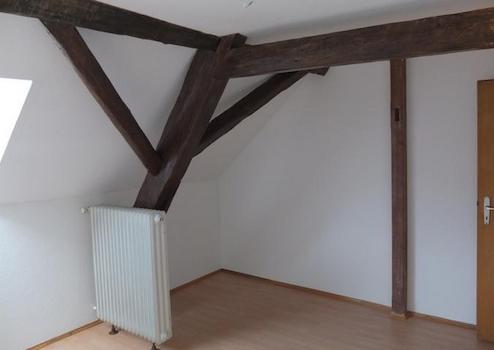 Vom 1. Stock innerhalb der Wohnung führt eine schöne Holz-Treppe zu den 3 1/2 Zimmern unter dem Dach mit schrägen Wänden und Gauben (in einem Zimmer wurde das Gebälg freigelegt, im anderen gibt es einen großen Einbauschrank), und einem extra Abstellrraum.