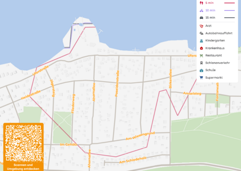 Die Immobilie liegt in einer angenehm ruhigen, wassergeprägten Umgebung im Raum Königs Wusterhausen und verbindet naturnahes Wohnen mit einer alltagstauglichen Infrastruktur. Besonders attraktiv ist die Nähe zum See: Eine Badestelle ist praktisch um die Ecke, weitere Seezugänge und Badestellen erreichen Sie ebenfalls in kurzer Zeit. Damit bietet die Lage ideale Voraussetzungen für Spaziergänge am Wasser, entspannte Nachmittage am Strand und sportliche Aktivitäten im Freien.