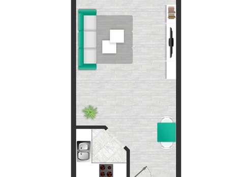 - 1 Zimmer mit abgetrennter Küche