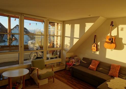 Die helle Wohnung liegt im 2. OG mit einer Terrasse.