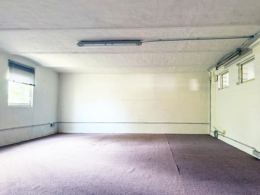 Im Jahr 1977 wurde das vorhandene Nebengebäude zu einem größeren Hallengebäude (nach unverbindlichem Aufmaß ca. 247 m² Nutzfläche) ausgebaut. Diese Halle umfasst eine großzügige Lager- bzw. Werkfläche mit zweiflügeligem Tor, zwei weitere Lagerräume sowie einen Durchgangsraum mit Rolltoranlage. Darüber hinaus gibt es einen weiteren Raum, einen Waschraum mit WC sowie ein Büro (ebenfalls mit WC). Ein Abstellraum ist von außen zugänglich.