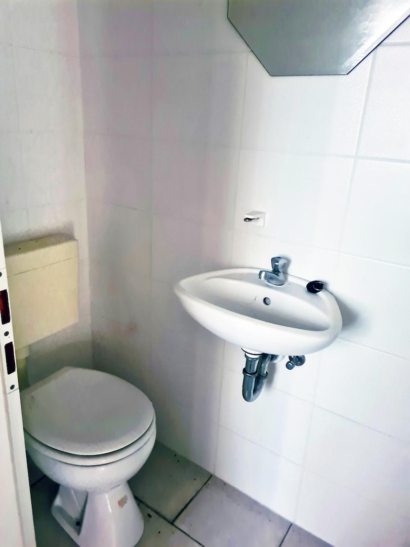 Das derzeit unbewohnte Erdgeschoss (ca. 71 m²) umfasst drei Zimmer, Bad, separates WC sowie eine Küche mit Zugang zum Hof.