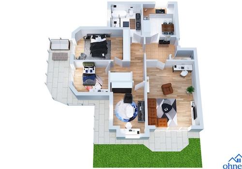 2018 kernsanierte barrierearme Wohnung mit Garten, zwei Terrassen, TG-Stellplatz & neuer Wärmepumpe