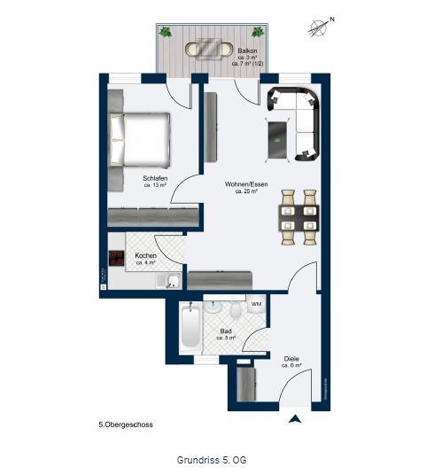 1,5-Zimmer-Wohnung mit Süd-Loggia in München-Schwabing-West