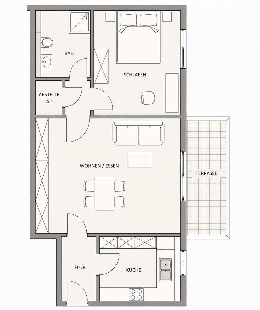2-Zimmer Wohnung Löffelfertig eingerichtetes Appartment mit 40m² 2-Zimmer Bad